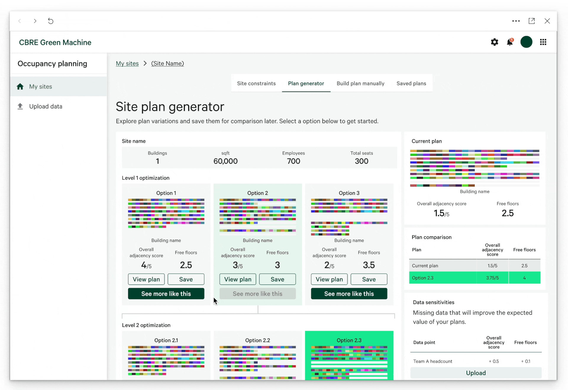• Occupancy Planners can save the plans to compare later.